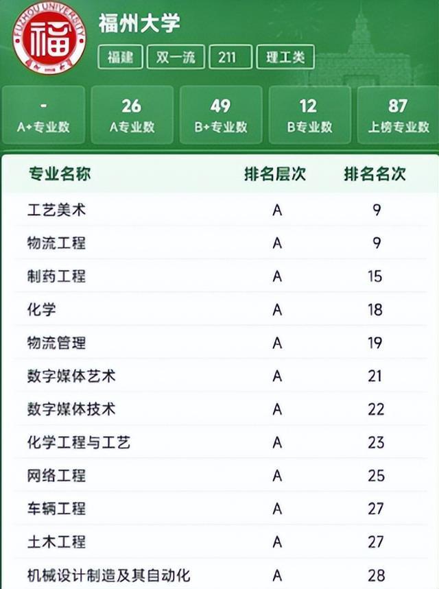 而这些产业的发展,离不开福州大学的人才供给和技术支持,福州大学作为福建唯一的“双一流”“211”工科强校,软科排名稳居全国77位,精准对接福州的产业需求,开设相关工科专业,培养的人才直接输送到本地龙头企业,实现了“校企联动、产学共赢”。