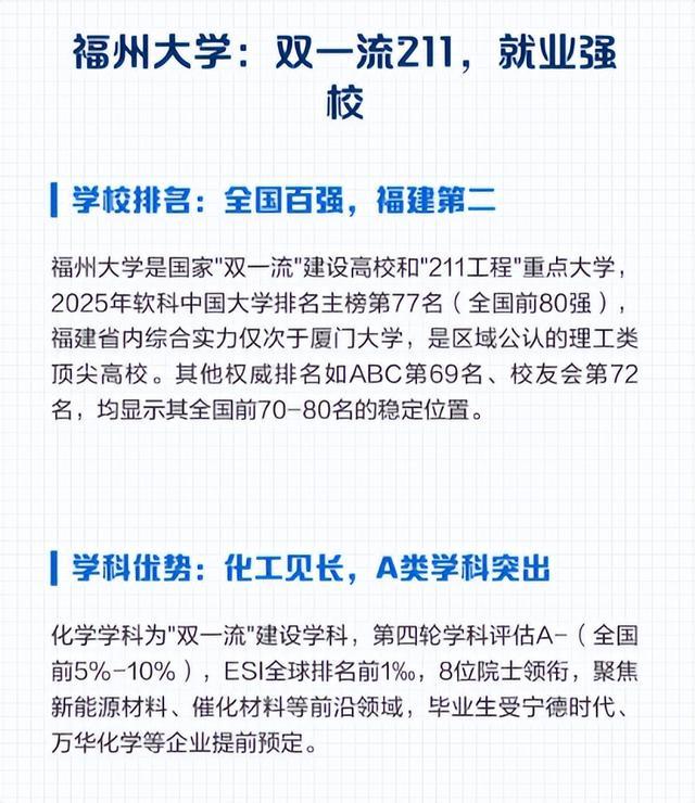 很多考生和家长选工科高校,要么盲目追求北上广的名校,要么跟风选择热门城市,却忽略了福州大学这样“城市崛起+专业适配+高性价比”的宝藏高校。